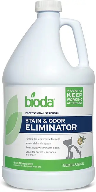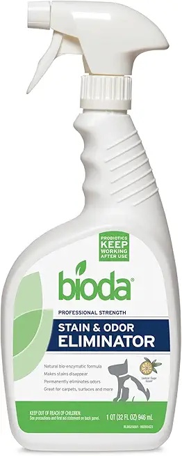 Bioda Pet Stain and Odor Eliminator. Specifically targets pet urine and organic stains, breaking them down at the source for complete odor removal.