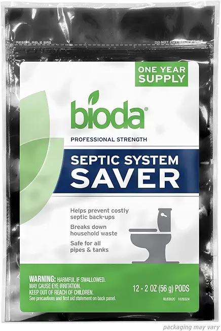 Bioda Septic System Saver – professional strength probiotic treatment that maintains healthy septic systems and prevents costly backups and odors.
